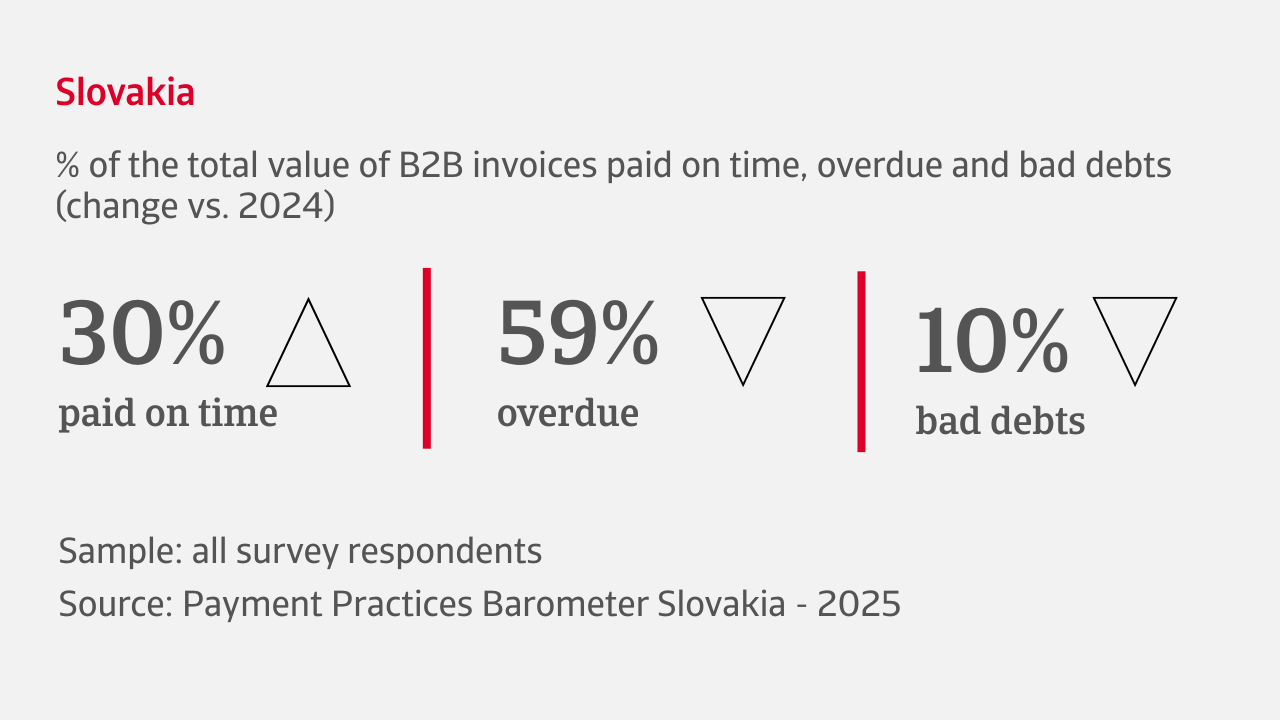 - Nearly two-thirds of the sales that Slovakian companies made on credit in B2B trade in recent months are overdue. This delay in payments is causing significant financial strain on businesses